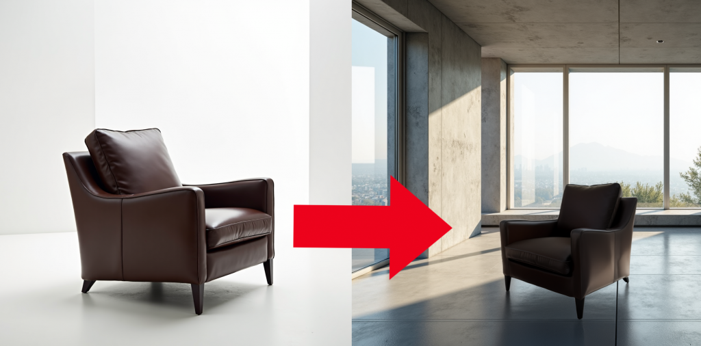 Cela fonctionne aussi très bien pour l’aménagement d’intérieur en 3D avec du mobilier ou des lampes de bureau. Petite astuce pour économiser vos crédits génératifs : si vous placez plusieurs objets, convertissez-les ensemble en un seul objet dynamique avant de lancer la commande « harmoniser ».